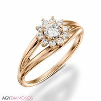 Ein klassischer Verlobungsring mit einem Preset 0.18 karat Mittelstein gefasst in rotgold. Die Fassung besteht aus 0.15 karat aus Diamanten mit Gesamtkaratgewicht von 0.33 karat.