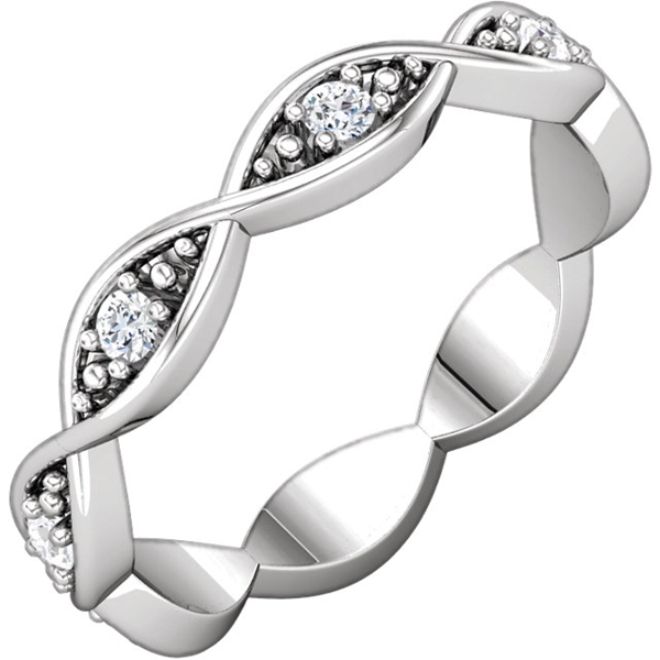 Fein und zurückhaltend präsentiert dieser Ewigkeitsring einen vollen Kreis mitt hell glitzernden Diamanten, gefasst in white gold für ein Gesamtkaratgewicht von 0.10 karat, perfekt als Trauring, zum Jubiläum oder als sonderbares Geschenk.