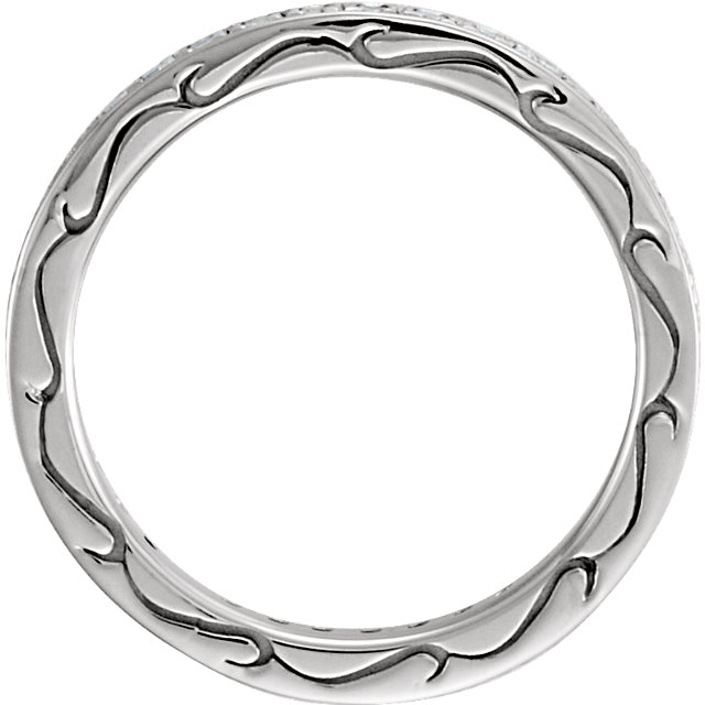 Komplex und Fein präsentiert dieser Ewigkeitsring einen vollen Kreis aus Diamanten, gefasst in white gold für ein Gesamtkaratgewicht von 0.50 karat, perfekt als Trauring, zum Jubiläum oder als sonderbares Geschenk.