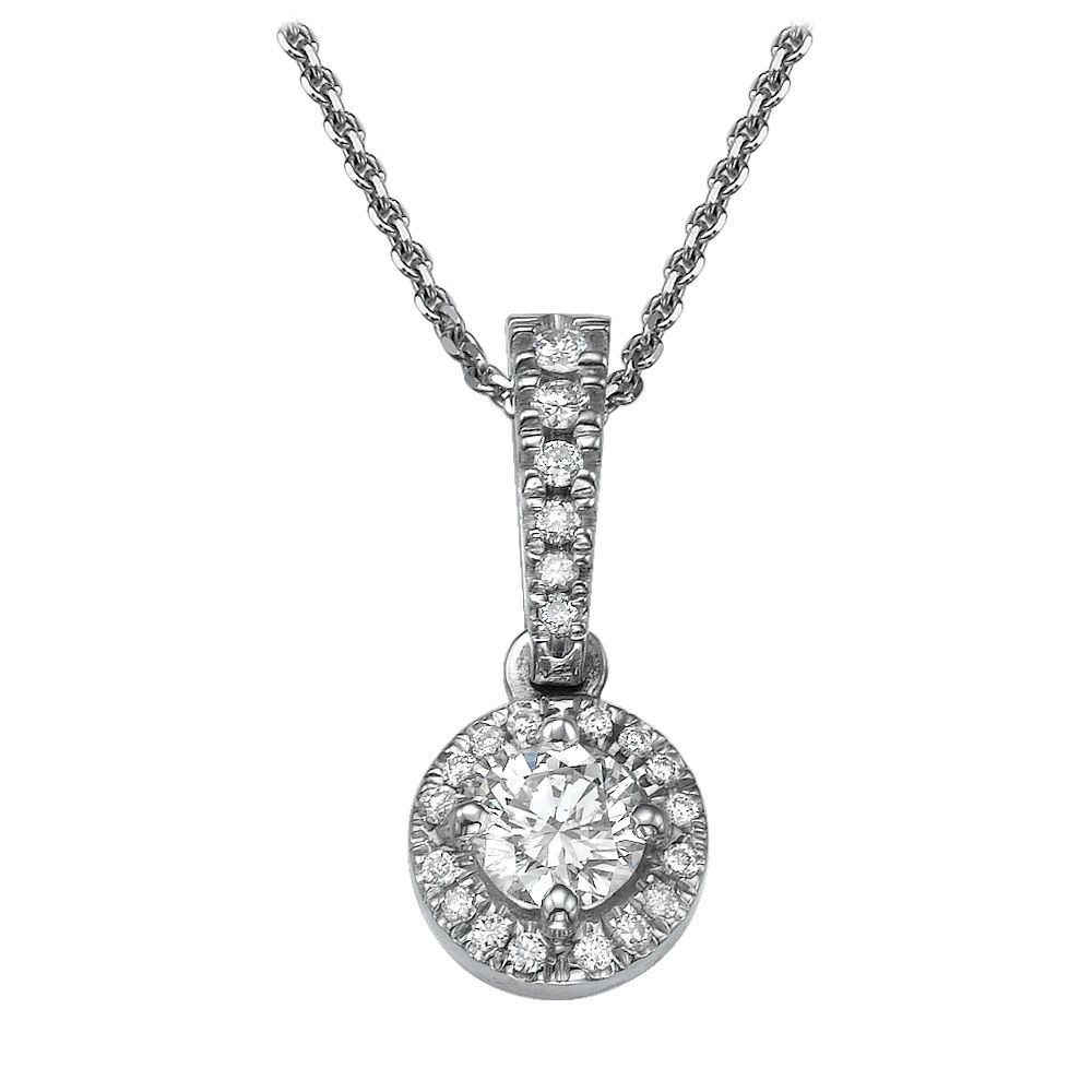 Dieser zeitlose Diamant Anhänger hängt von einer Kette mit einem Gesamtdiamantkaratgewicht von 0.45 karat.
