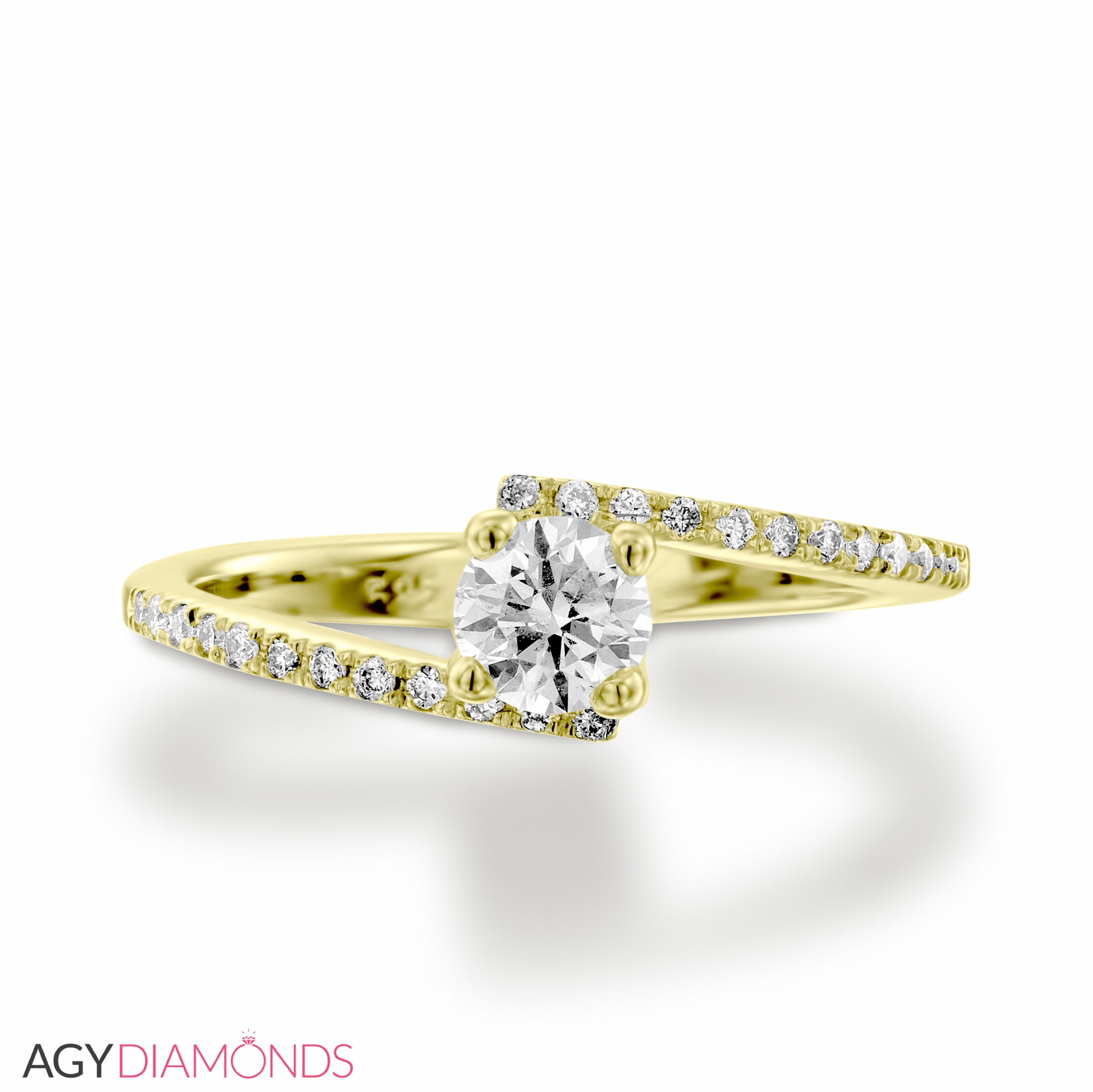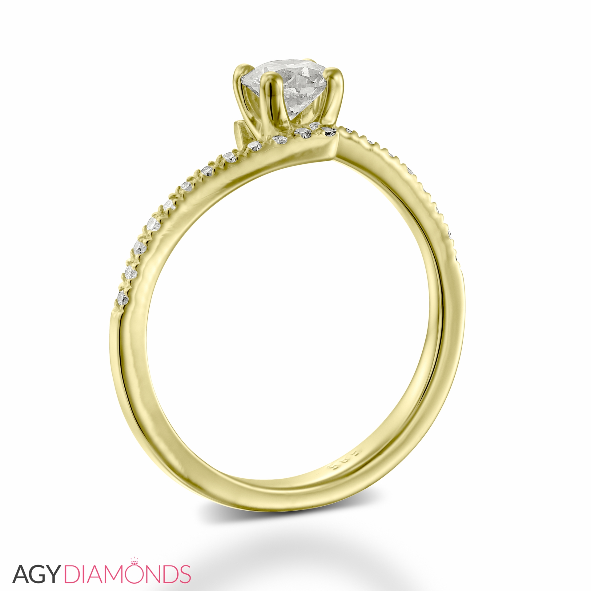 Ein klassischer Verlobungsring mit einem Preset 0.90 karat Mittelstein gefasst in gelbgold. Die Fassung besteht aus 0.12 karat aus Diamanten mit Gesamtkaratgewicht von 1.02 karat.